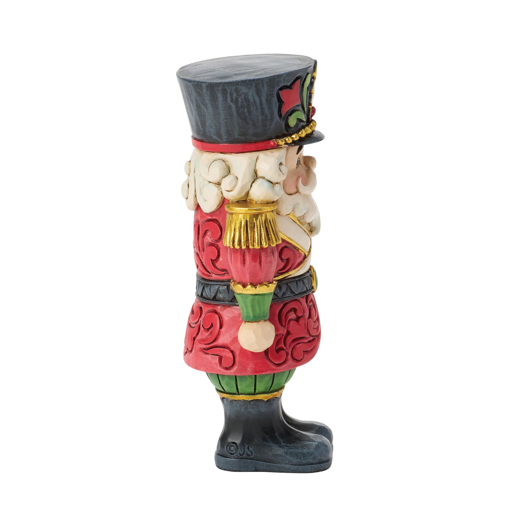 A tiny nutcracker soldier stands tall in Jim Shore's folk art style. His crisp detailing and warm colors make him a charming accent for holiday vignettes. Perfect for a small yet potent dose of holiday magic.
