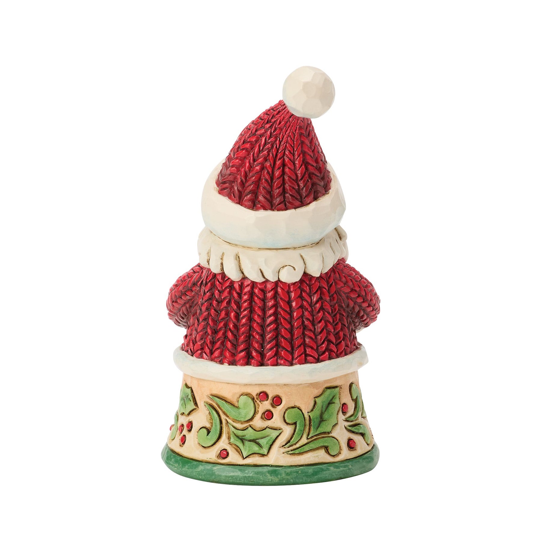 This mini Santa holds a clear resin star, ready to top the tree. Jim Shore's artistry adds festive depth to his coat and hat, making him a small but meaningful symbol of the season.