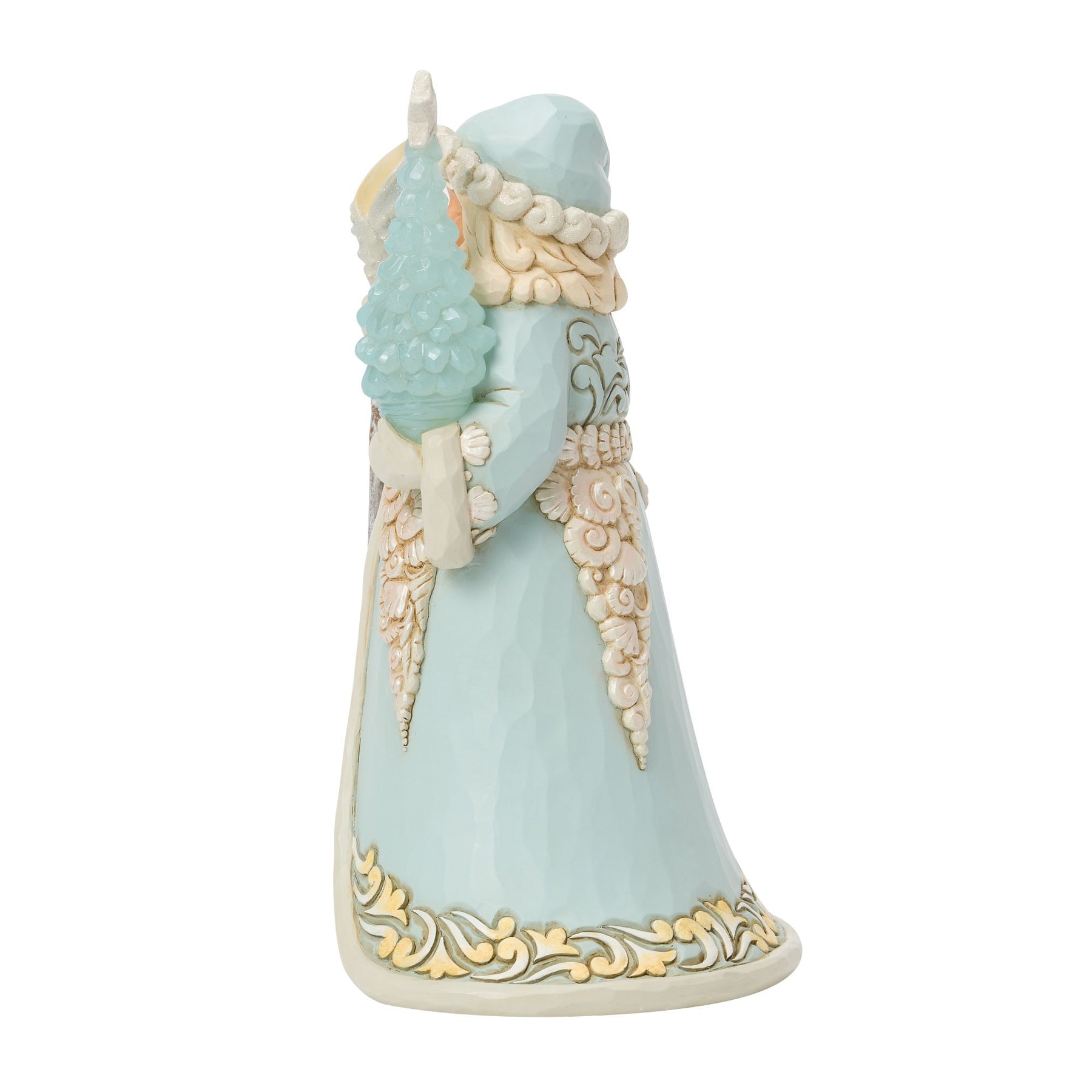 Dressed in a coastal blue robe, Santa is completely adorned with the treasures of the sea. Shells trim his hat, cloak, and sleeves, while a shell belt cinches his waist. Carrying a conch staff and a sea glass tree, he brings sea cheer to Christmas.