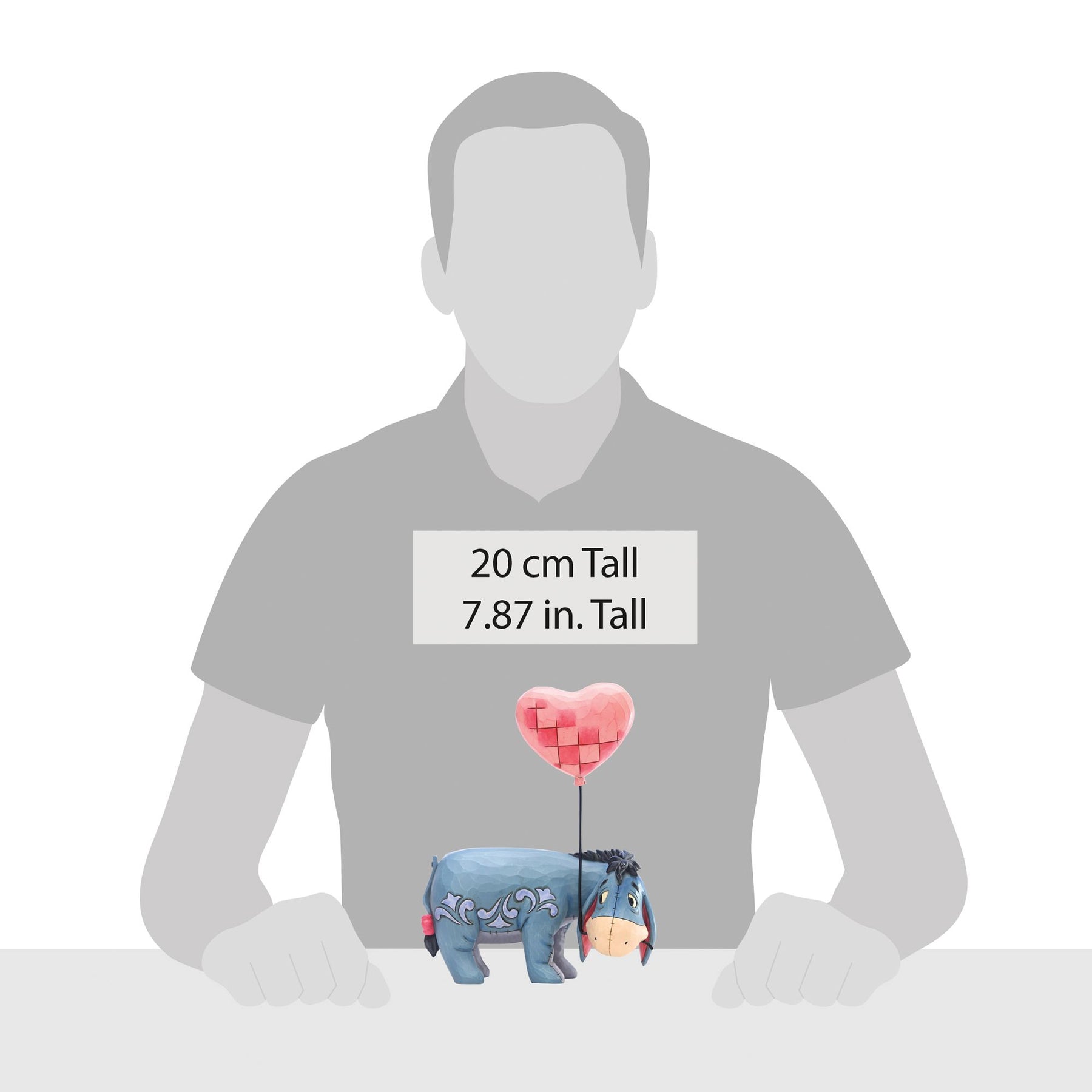 Even Eeyore has a hard time frowning in this precious Jim Shore piece. A heart balloon latched to his mouth, the donkey will start floating with love soon enough.