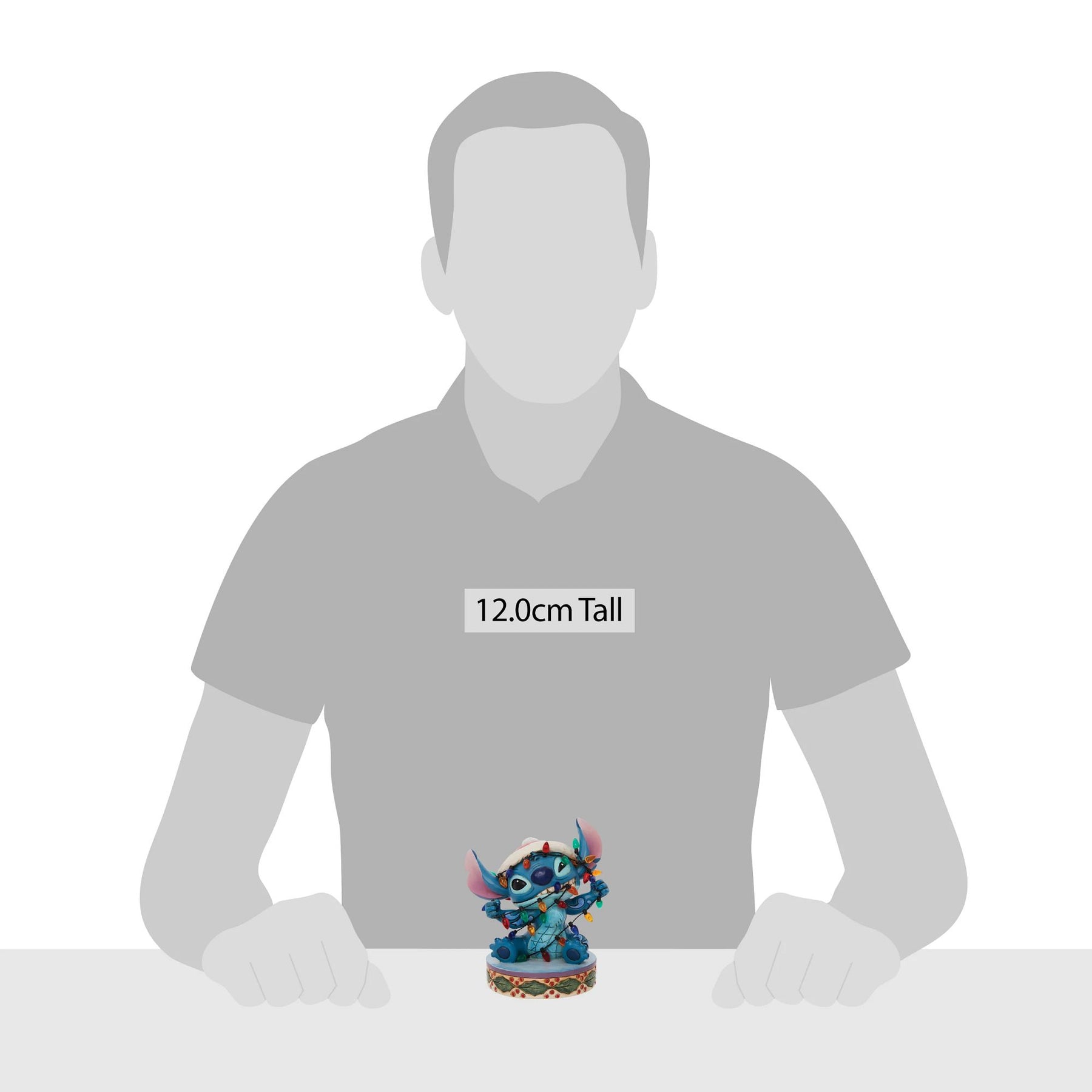 Disney comes home for the holidays with this festive design by Jim Shore. Attempting to help his Ohana decorate, Stitch gets caught up in Christmas preparations. Tangled in lights, the little alien tries to escape while wearing a Santa hat.