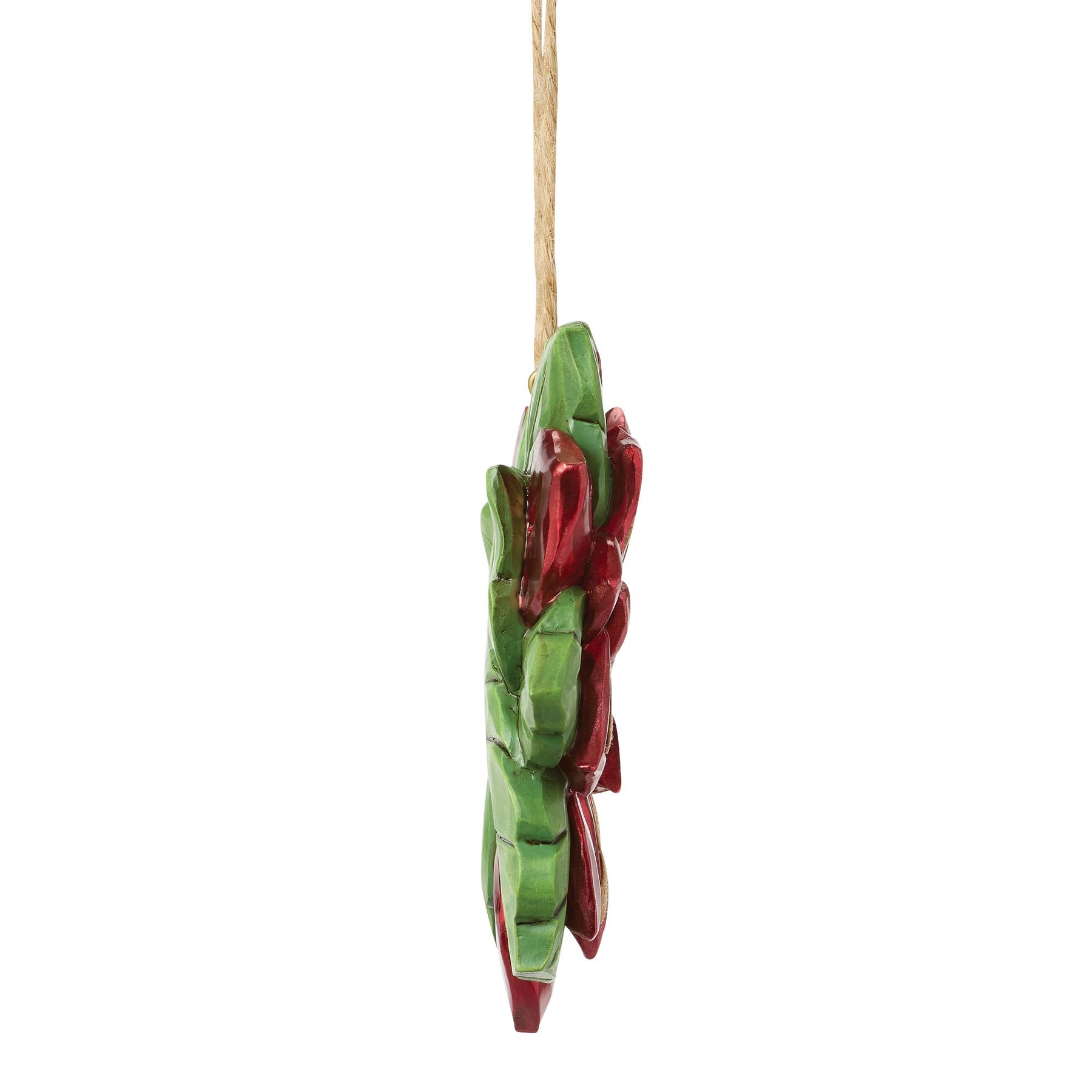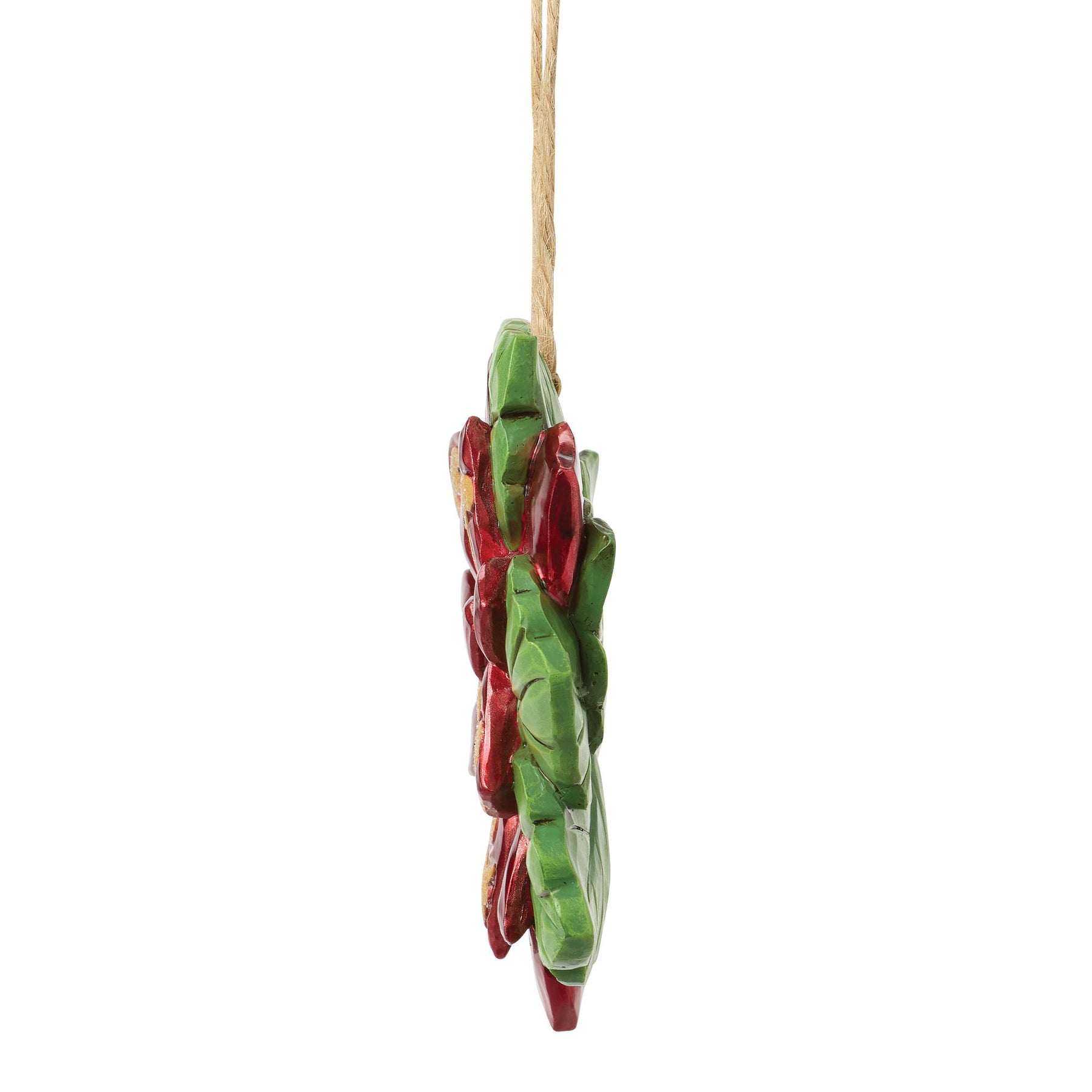 From Jim Shore's Legends of Christmas collection, this striking ornament tells the story of the Christmas poinsettia with Shore's signature style. Rich colors and detailed patterns bring the legend to life. A meaningful piece for your tree.